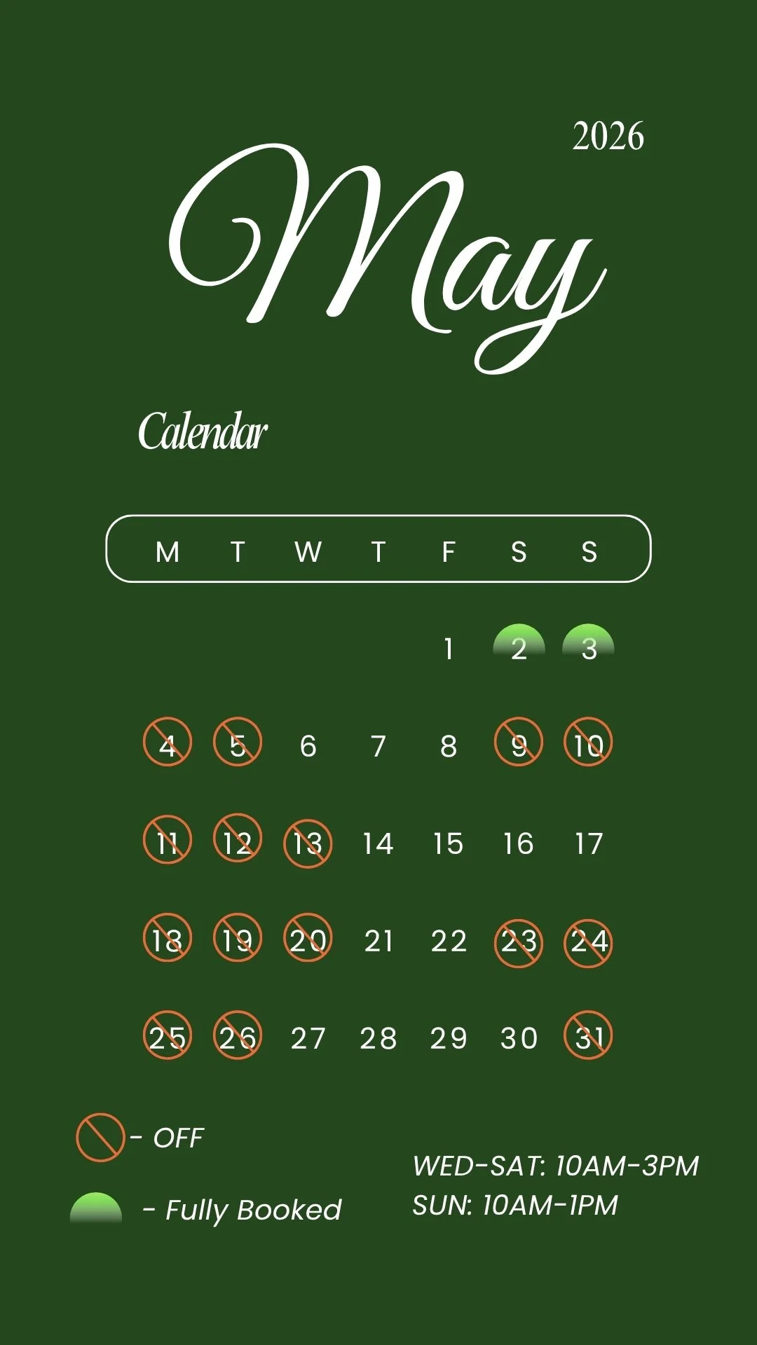 My hours are generally consistent throughout the month, though occasional adjustments or days off may occur. This section provides an overview of any schedule changes or planned time off for the current month, allowing you to plan your appointment accordingly.